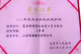 江蘇保捷鍛壓有限公司的表面精軋強化齒坯項目,由國家科學技術部批準,喜獲由科學技術部火炬高技術產(chǎn)業(yè)開發(fā)中心頒發(fā)的國家火炬計劃產(chǎn)業(yè)化示范項目證書。